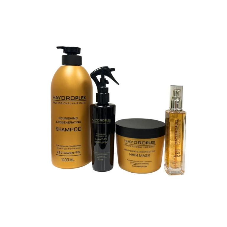 מארז היידרופלקס זהב haydroplex ללא מלחים לשיקום השיער הכולל שמפו 1000 מ”ל + מסכה 500 מ”ל + סרום 50 מ”ל + מסכה ללא שטיפה 200 מ”ל