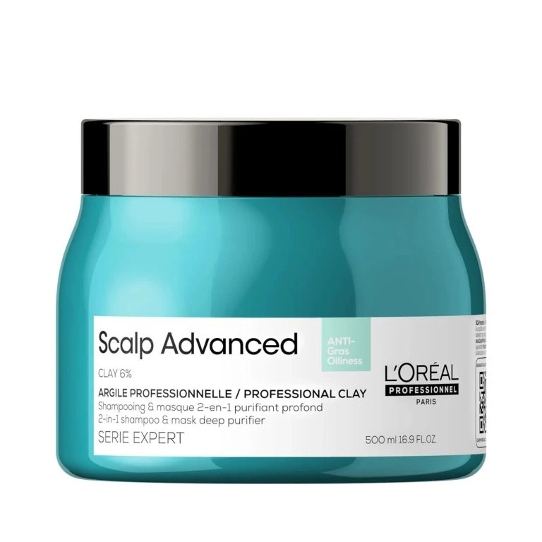 שמפו + מסכה (2 ב-1) לניקוי עמוק ויסודי לקרקפת שומנית סקאלפ אדבנסד 500 מ”ל – לוריאל LOREAL